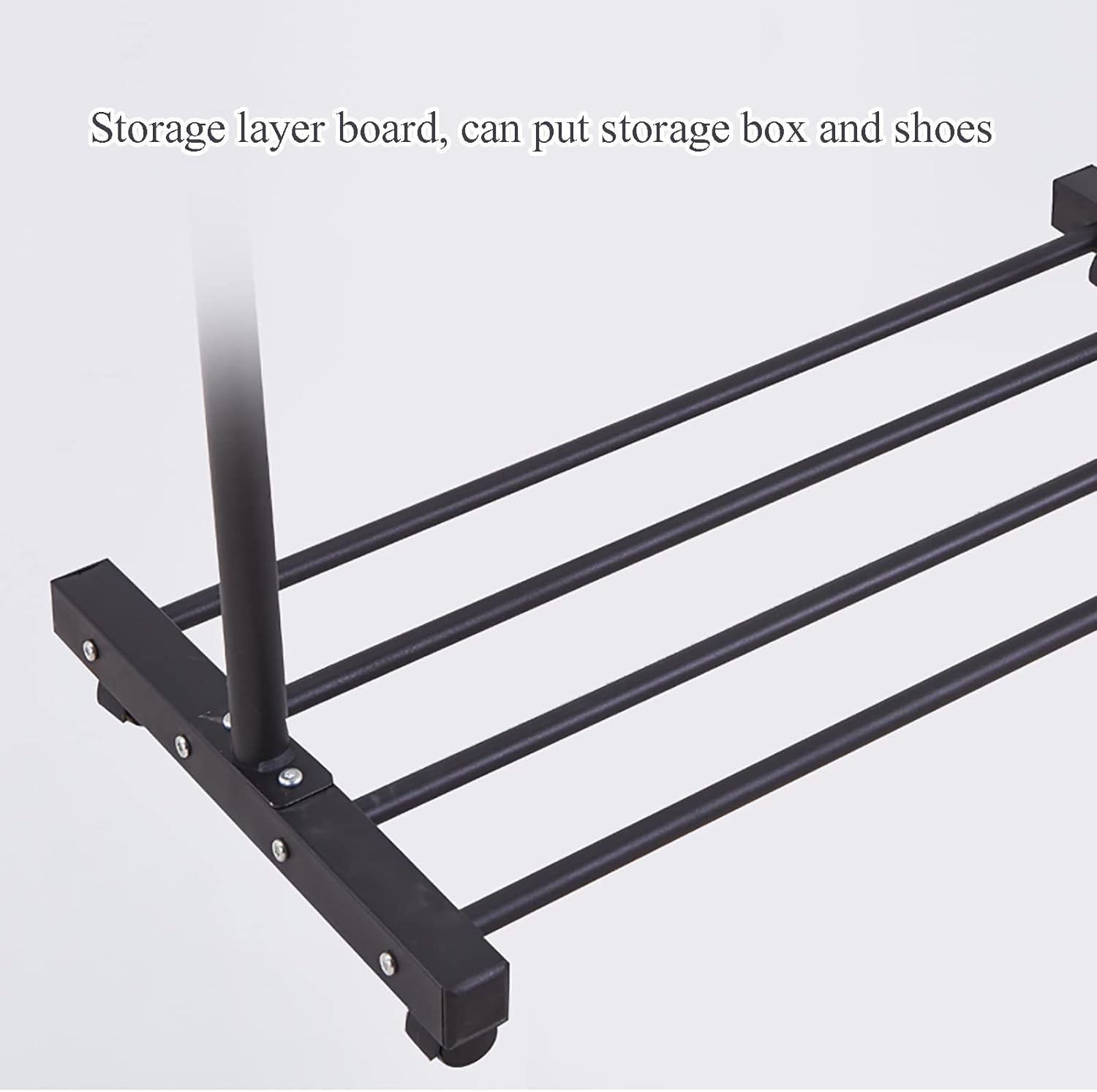 2-in-1 Great Unit: This multi-purposeful garment rack can be used as wardrobe rack, shoes shelf or accessories bins organizer. The clothes garment rack can act as multiple roles, helping to save your precious time. Adjustable feet to adapt to uneven ground.