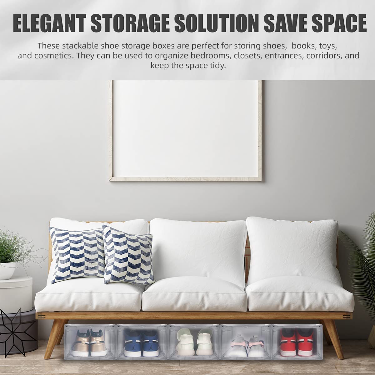 【Sturdy And Stackable】:Our shoe box is made of heavy-duty plastic sides, safe, environmentally friendly, non-toxic.The surface is resistant to abrasion and aging. Its thick design guarantees its reliability and durability.
