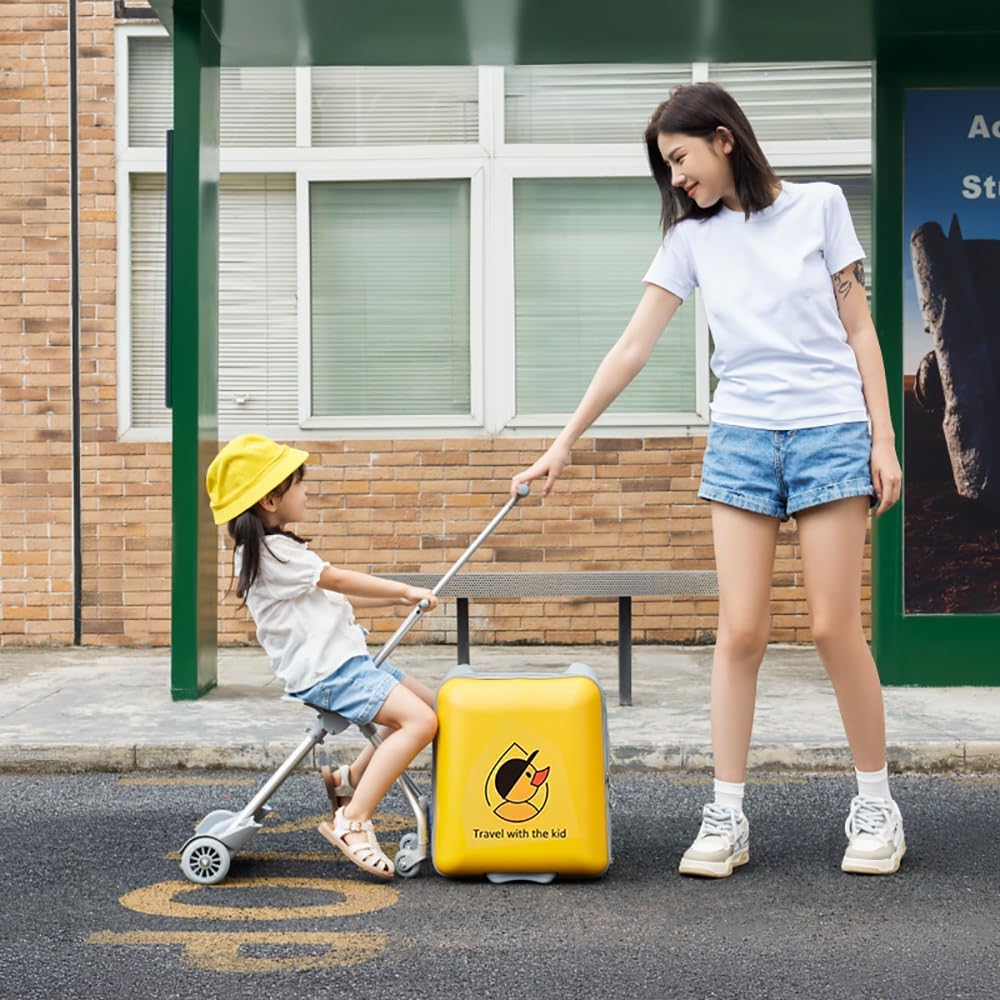 - Product Name: 2 in 1 Rolling Luggage Case for Kids, Expandable Carry-on Suitcase with Baby Stroller for 3-10 Years Toddler Infant, 20 Inch Children Ride-On Trolley Case for Outdoor Travel (A, Yellow Duck)