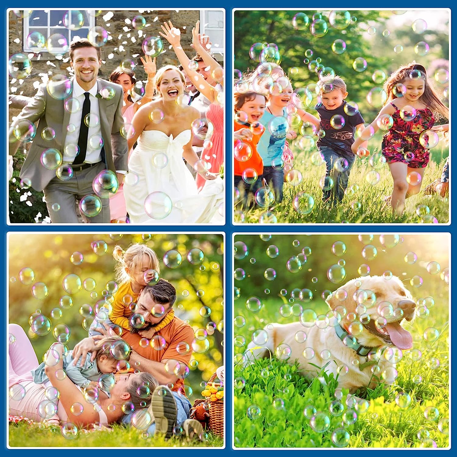 360 Degree Use Will Not Leak - Compared with other leaked bubbles machine gun, we have upgraded the bubble machine gun, seal the bubble interface and ensure that the bubble machine gun fits the bubble bottle perfectly, besides, we use the strict quality inspection to ensure that the bubbles fluid does not leak and make hands dirty or sticky.