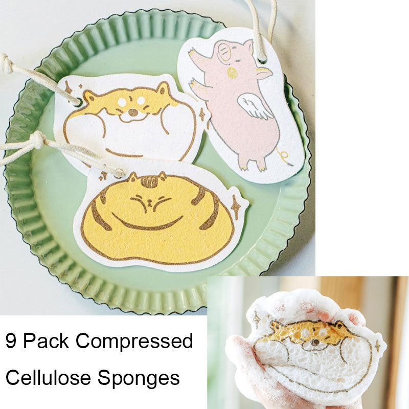 9 Pack Kitchen Sponges Compressed Cellulose Sponges Non-Scratch Natural