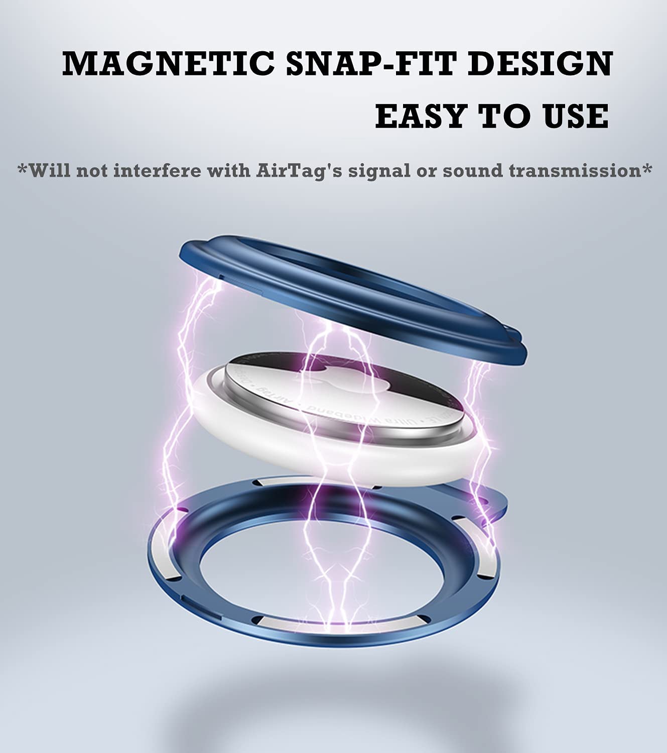 This accessory for AirTag is a Magnetic snap-fit design, very easy to install the AirTag, and the AirTag is no possibility to drop out from the closed protective case. And will not interfere with AirTag's signal or sound transmission.