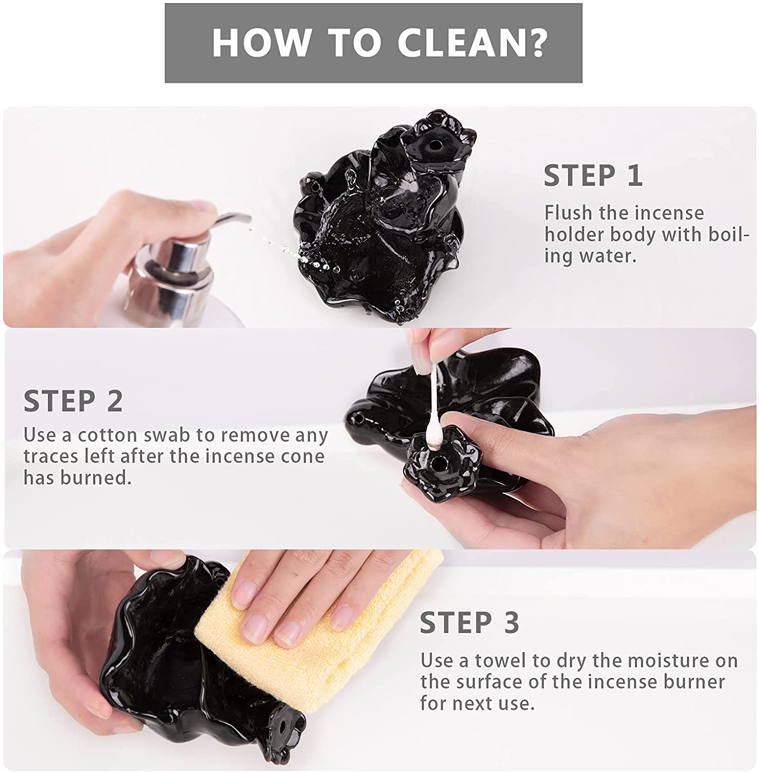 - Easy Clean: Flush the incense holder body with boiling water, and the stain on the censer will be removed.Smoke may leak from the bottom of the incense burner. Please do not put it directly on the furniture.