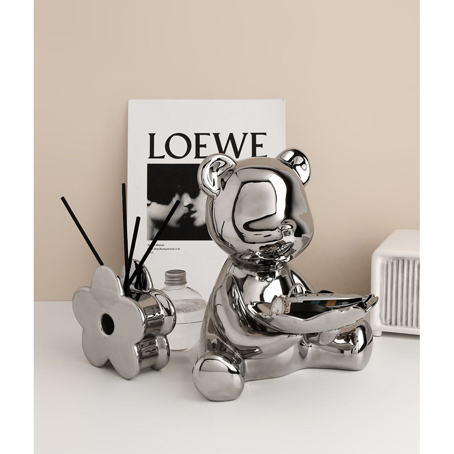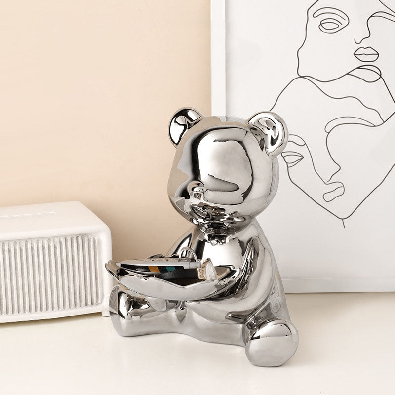 Nordic style original bear storage sculpture, home living room decoration accessories,Keys, cosmetics, candy storage tray