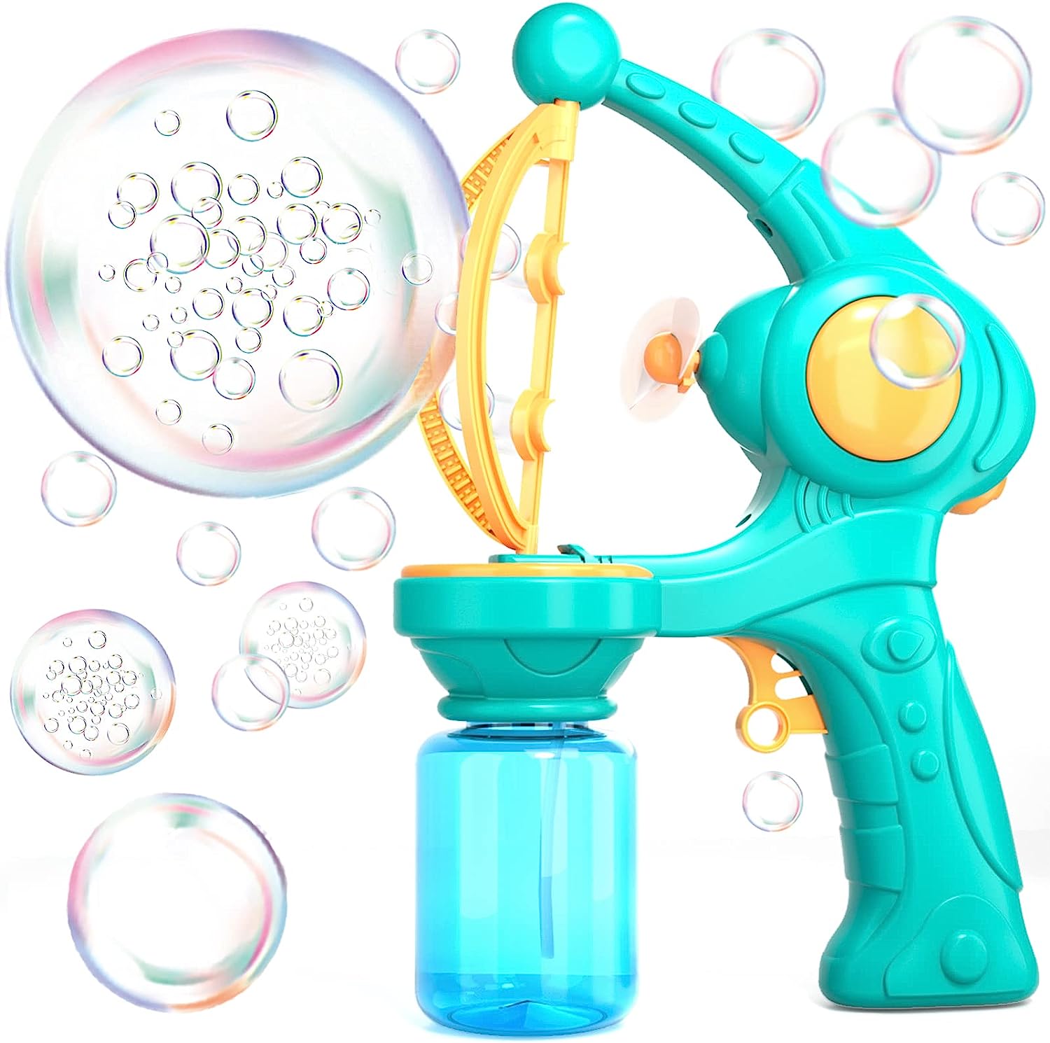 Safety First - The bubble machine gun for toddlers is made of non-toxic ABS material, BPA-free, and the fan blades are made of soft sponge material, which is very safe and specially designed for children. Perfect for summer parties, picnics, swimming pools, bath showers, beaches, outings, birthdays, weddings and other scenarios.