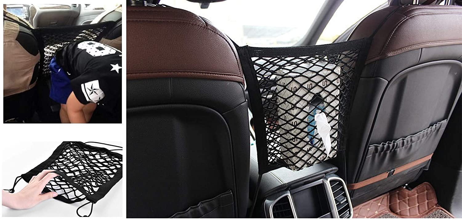 INNOVATIVE DESIGN Car Seat Storage Bag: Store lots of things, dedicated location for ladies’ bags, barrier for pets and children in the back seat,