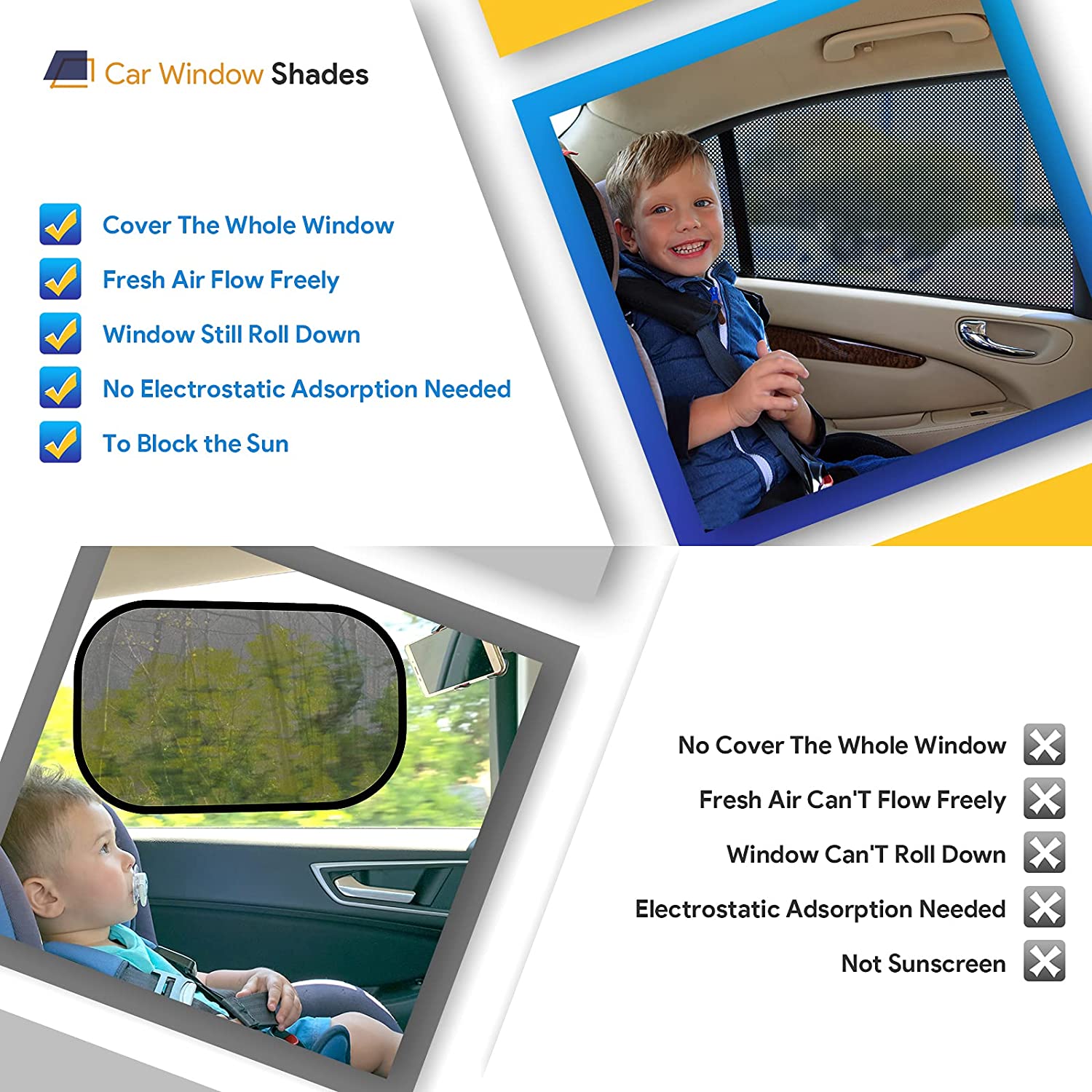 The car window sunshade has good sunlight protection and mosquito isolation, protect baby, family and pets in the car from heavy sunlight or mosquito bites.The elastic mesh prevent high temperature, keep the interior environment comfortable.