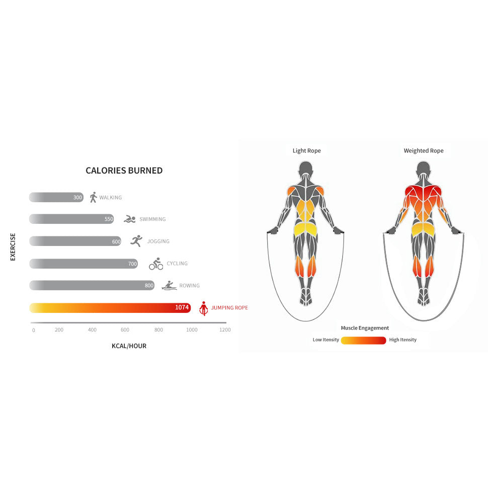 It can record your weight, loop counter, time and calories burned. You can also set the training laps or time as a target. And the digital counter has a reminder light so that you can jump rope for working out in a dark environment.