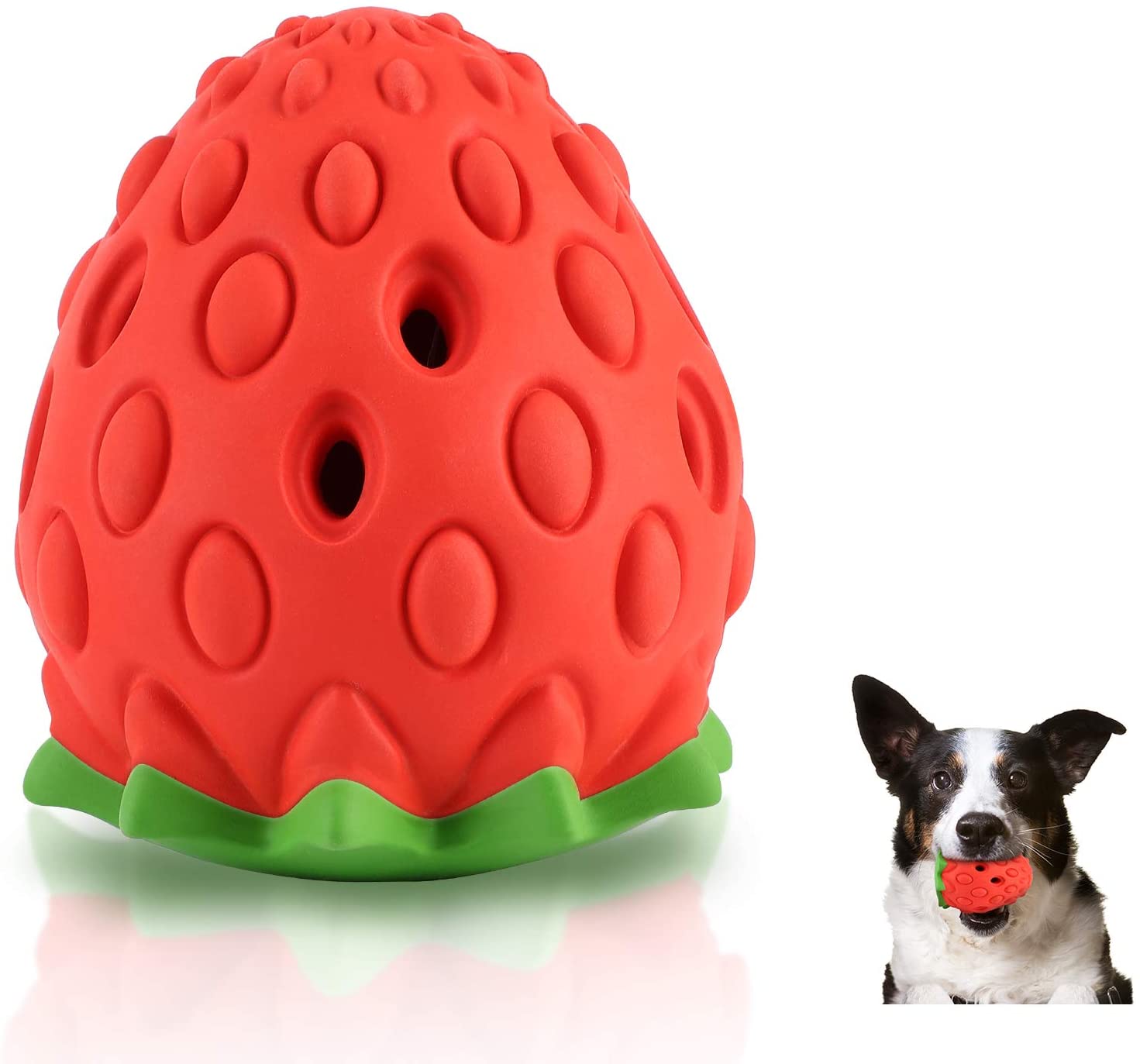 Strawberry dog toy with air side outlets allow your pets smell food easily. The seductive strawberry-milk flavor also attracts them to chew. The dog teething chew toys for aggressive chewers with hollow on the surface are really bite-resistant. As a dog toothbrush chew toy, it helps dogs improve dental hygiene.