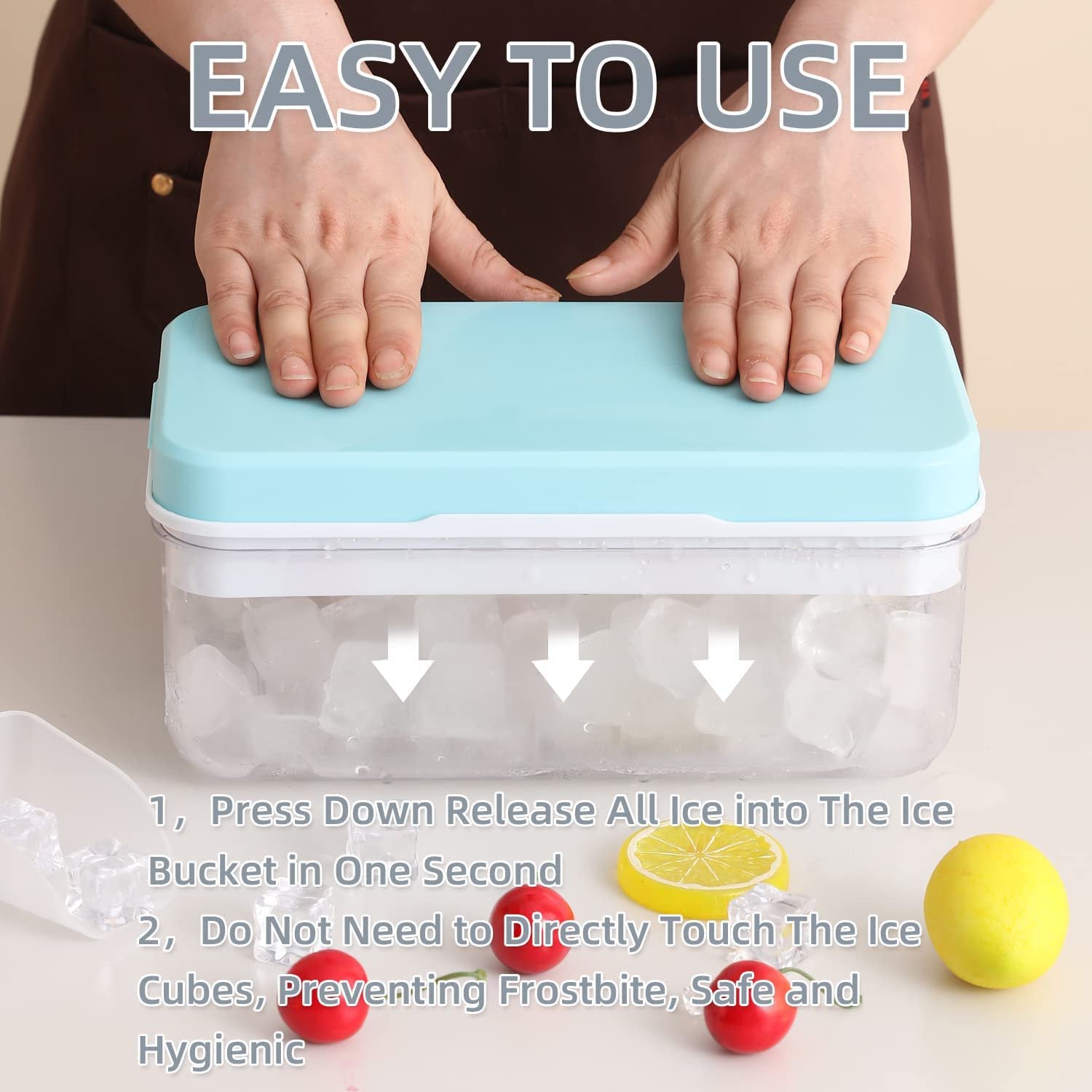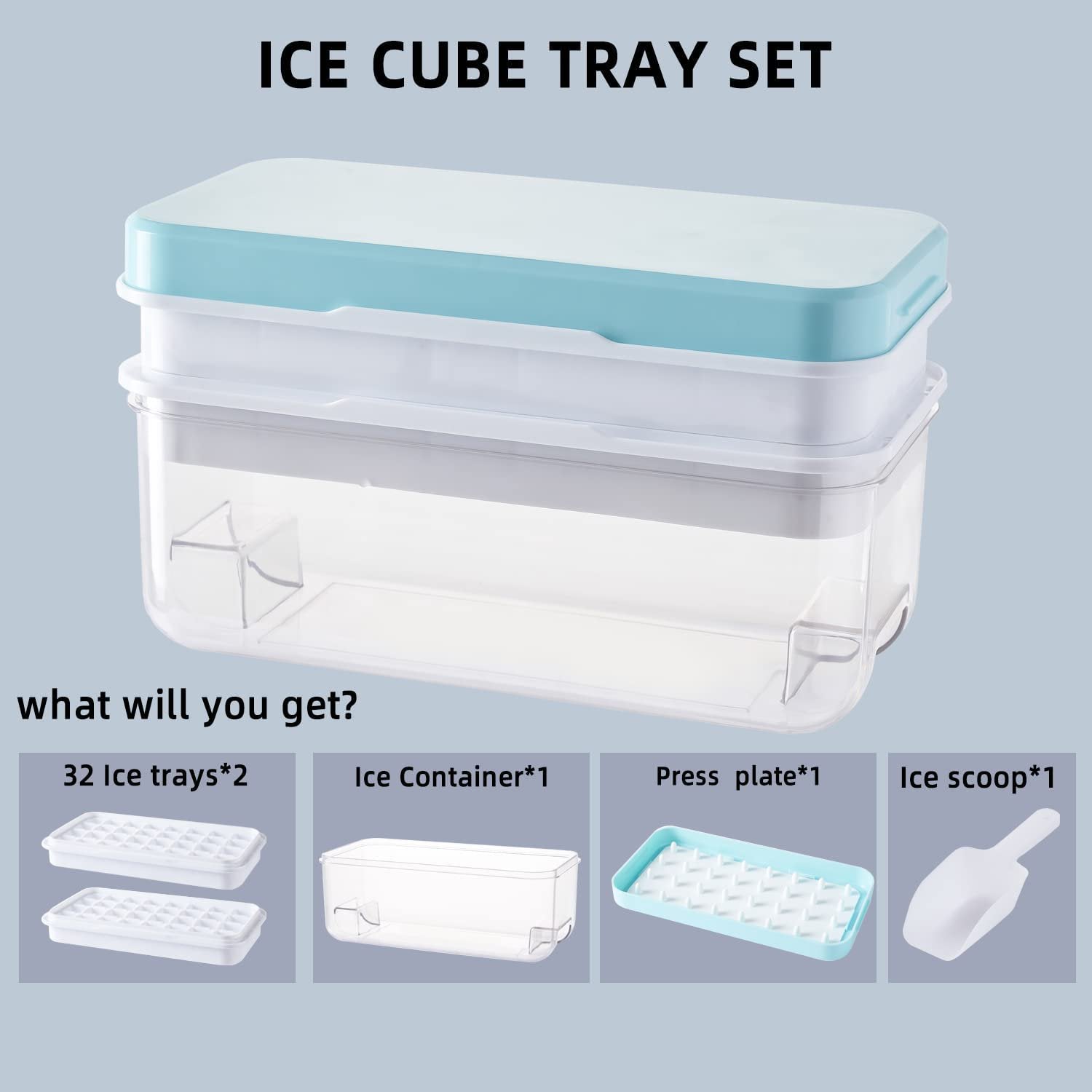Press to Release Stackable 64Pcs Ice Molds Trays with Ice container Ice Maker Blue