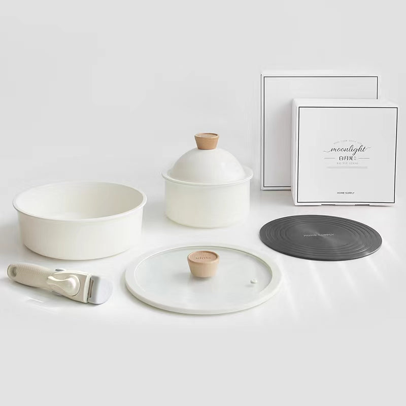 KIMS COOK All Cooker type 18cm Milk Pot + 24cm Fry Pan Set (6pcs) - White