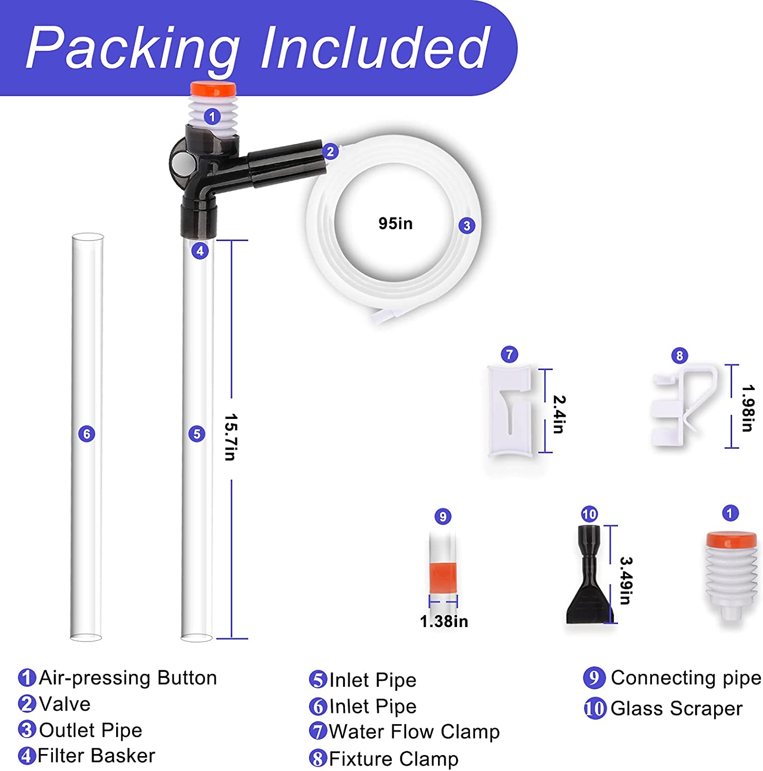Aquarium gravel cleaner kit has a gravel filter basket in the outlet tube (Already installed, no need to install it again), avoid blocking by gravel. Not only can effectively separate and remove tank debris, but also protect the fish and shrimp from being suck out of the aquarium