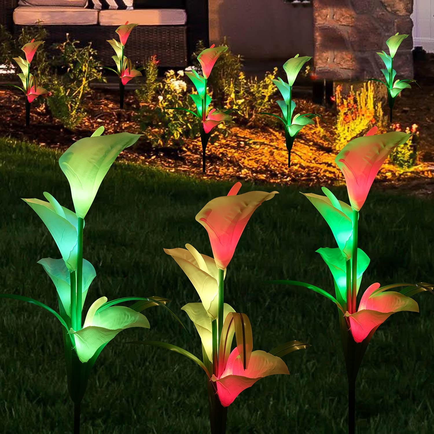 Solar Garden Stake Lights, Upgraded 2 Pack Outdoor Waterproof Solar Powered Lights with 8 Calla Lily Flowers, 7 Colors Changing LED Solar Lights for Garden, Patio, Backyard