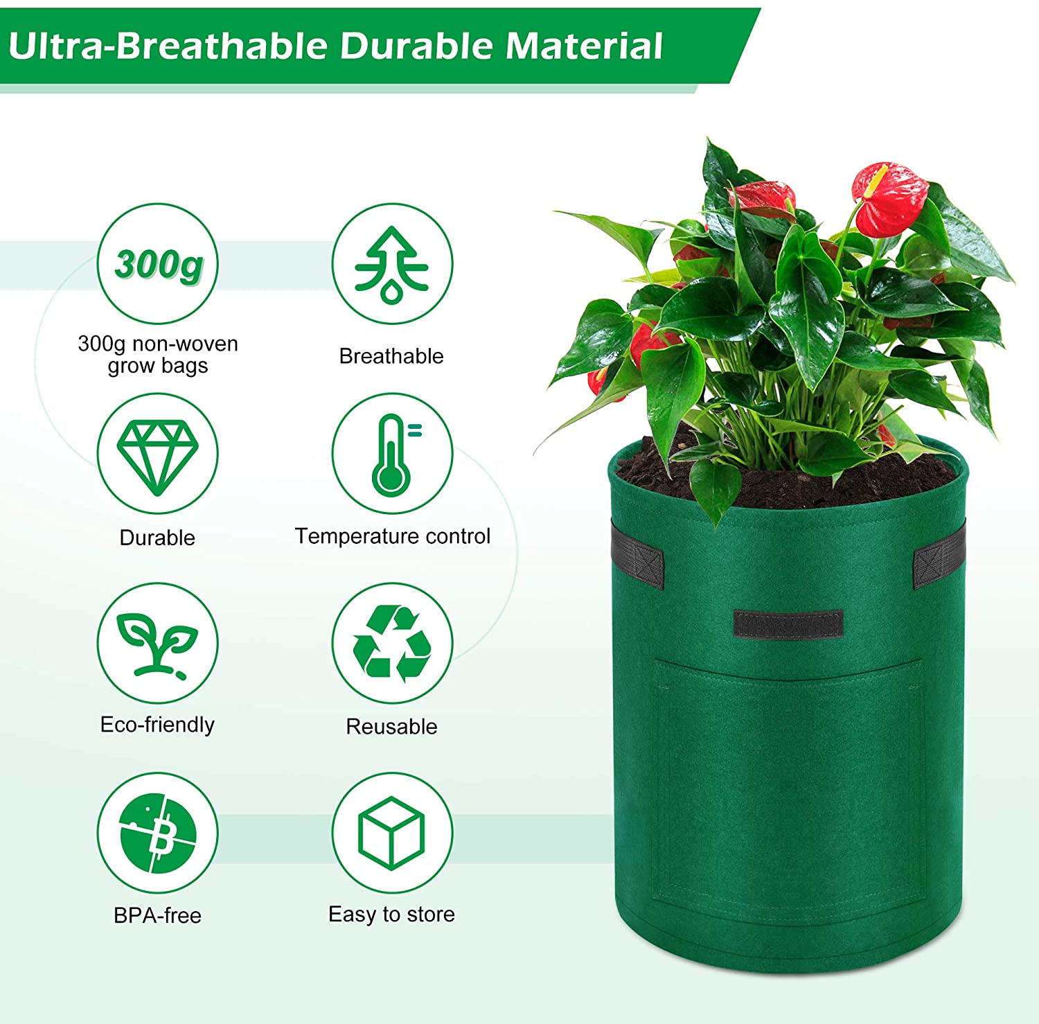 Breathable and Durable Material: the plant grow bags are made from selected non-woven, ultra-soft, super absorbent, breathable, strong permeability, it can drain extra water to prevent the plant roots outside from growing, ensure the benign growth of the roots, enhancing root structure, reduces the probability of root entanglement, resulting in a healthier and vigorous plant.