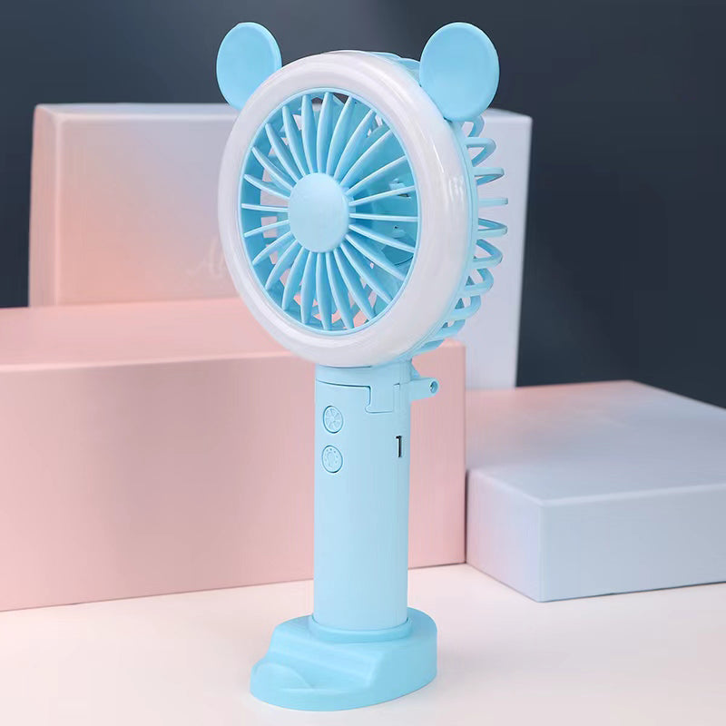 Portable Rechargeable Foldable Fan with LED Mouse - Blue