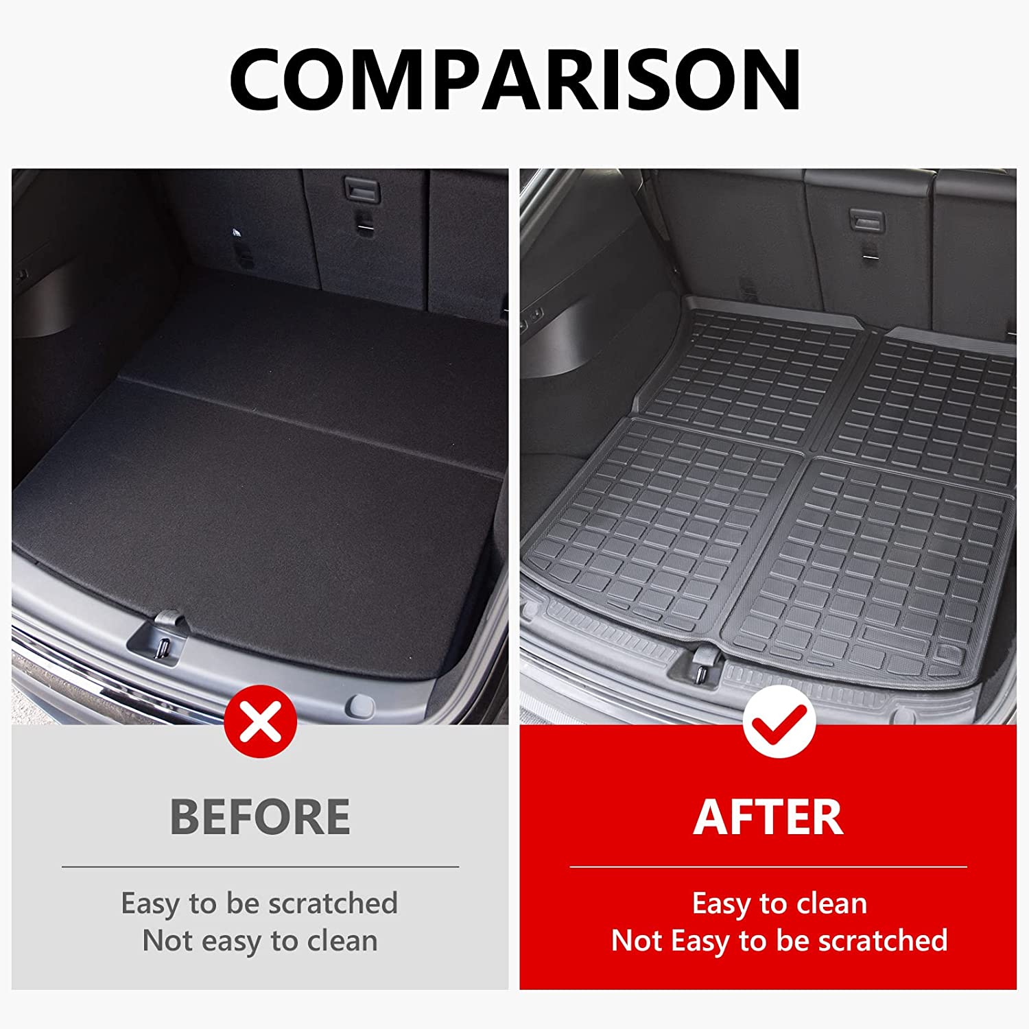 Tesla Model Y trunk mat are easy to install.You can easily clean the dust by cloth and soap water.