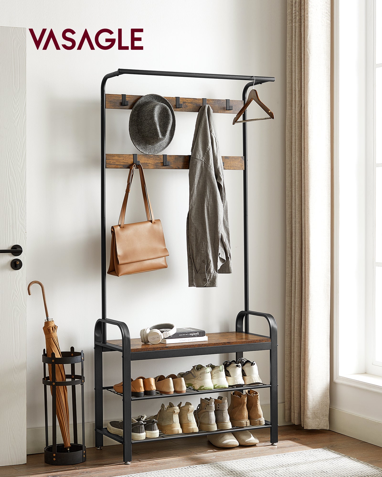VASAGLE Coat Rack, Coat Stand with Shoe Storage Bench