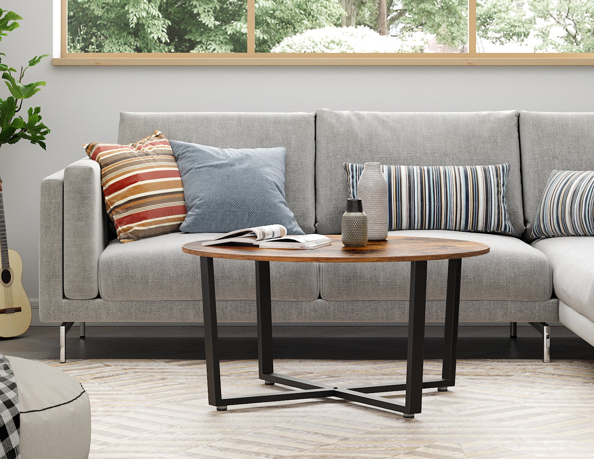 CHARACTERISTICS? UNIQUE: Leave behind those tables that are just "taken and put there". This coffee table, with unique matte black steel legs joined together and a round top with rustic wood grain, brings a touch of charm and novelty to your living room
