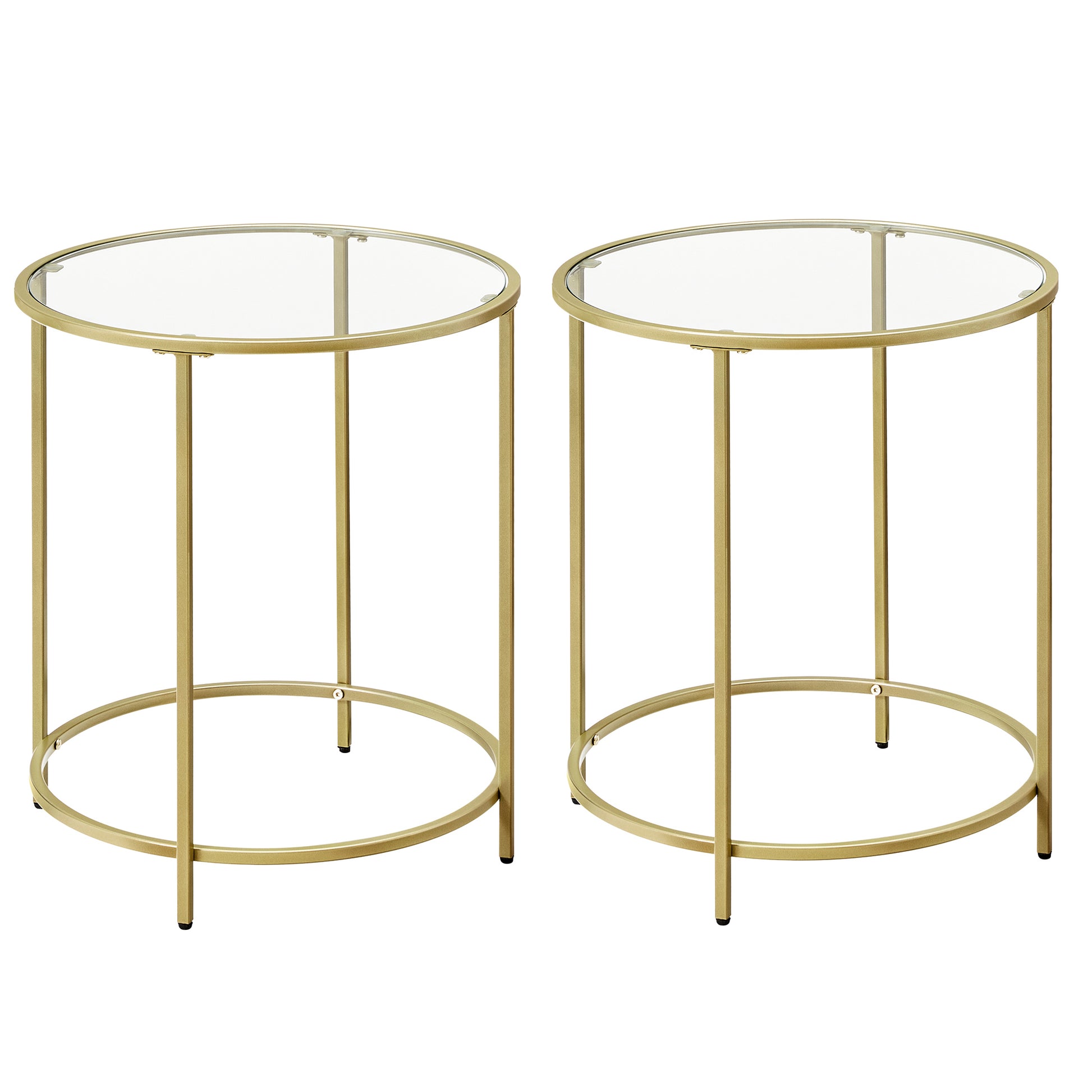 - [Stunning Minimalism] Take your home to the next level with this set of 2 modern side tables that unites sleek, gold colored metal and tempered glass tops into 2 minimalist-yet-functional pieces
