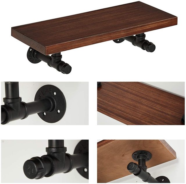 Pipe Shelf Brackets: Made of black iron with a wear-resistant coating, build to resist daily scratches, corrosion and tarnishing. Brackets build a vintage and industrial style.