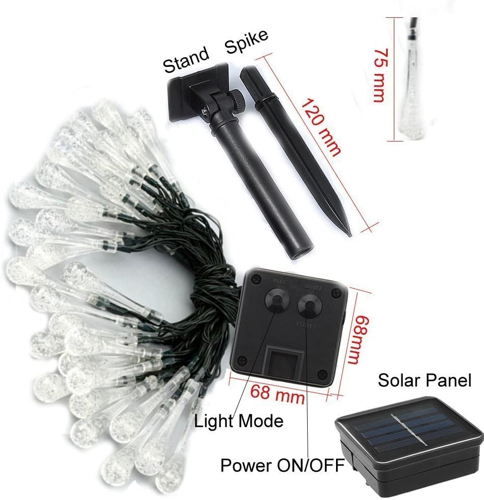 Solar String Lights, Outdoor Waterproof Fairy Light 6.2m 30 LED Light Blue Waterdrop Lighting for Christmas, Garden Patio Indoor Party, Bedroom, Xmas, Yard, Proch Decoration
